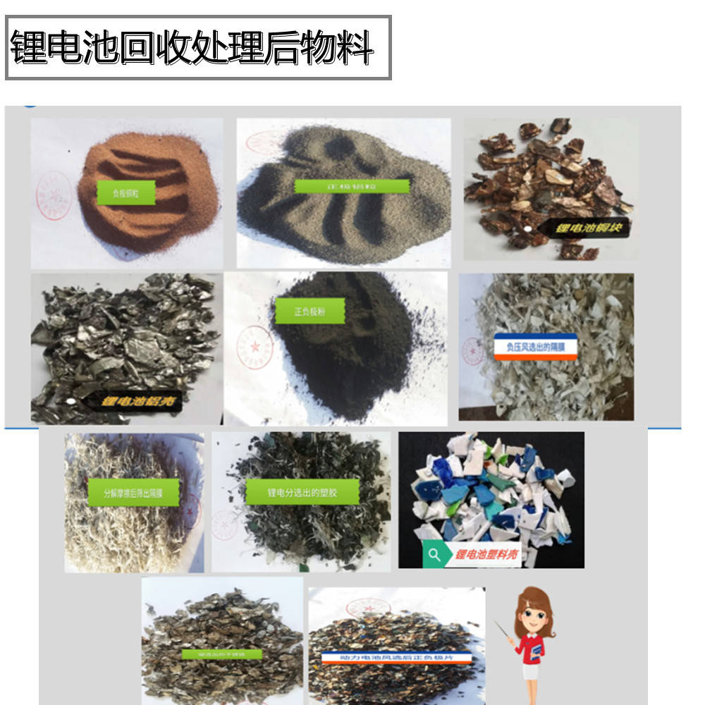 經過鋰電池回收處理設備的處理,可以把這些材料分選出來